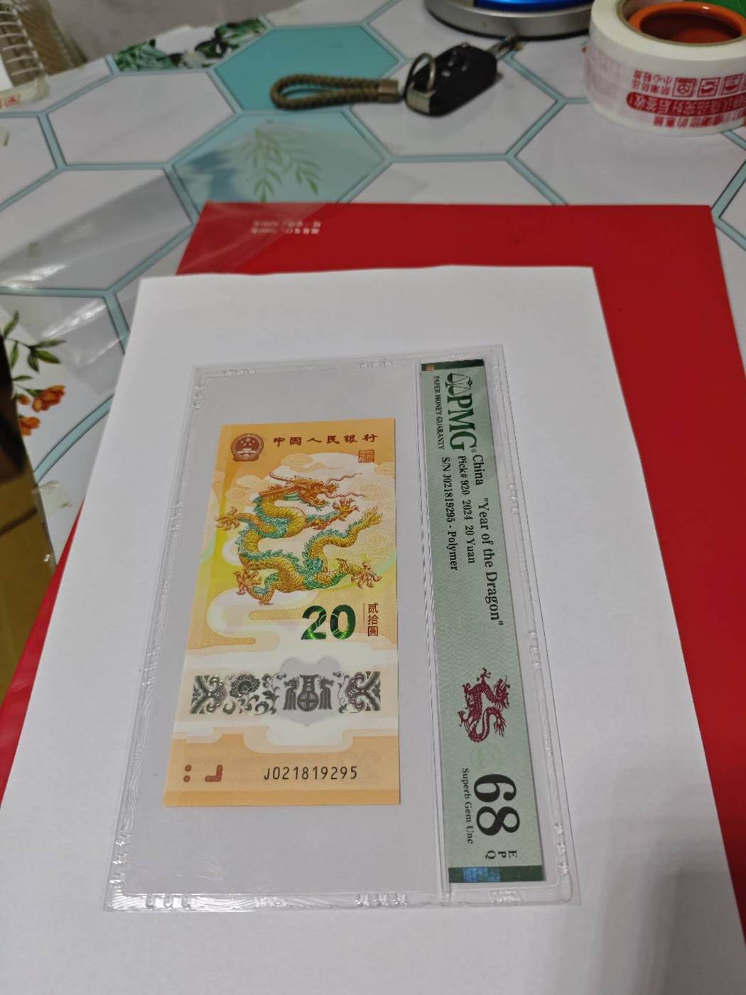 出1张小龙钞无3457满号68分尾95,6400元包邮。