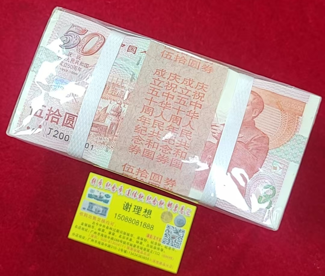 建国钞标准生日号20011001,双年份号一原梱,数三(012)组合,灯下无斑,如图,售35.8万,包邮!