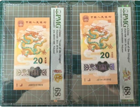 小龙钞0159至尊组合两张,单价2960元一张,PMG68