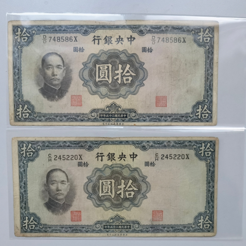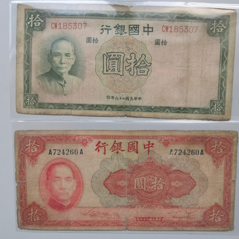 → 民国中央银行拾圆、中国银行拾圆