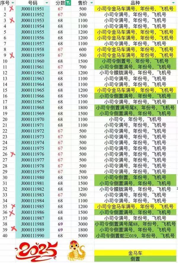 J000111951-J000111990,飞机头+年份尾,独一无二
