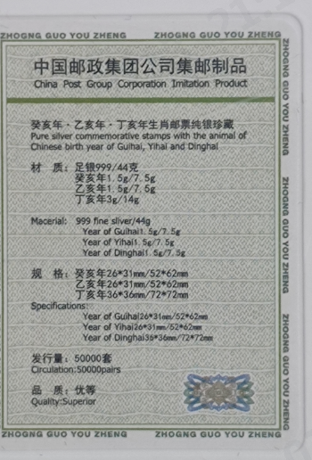 癸亥年。乙亥年。丁亥年生肖邮票纯银珍藏