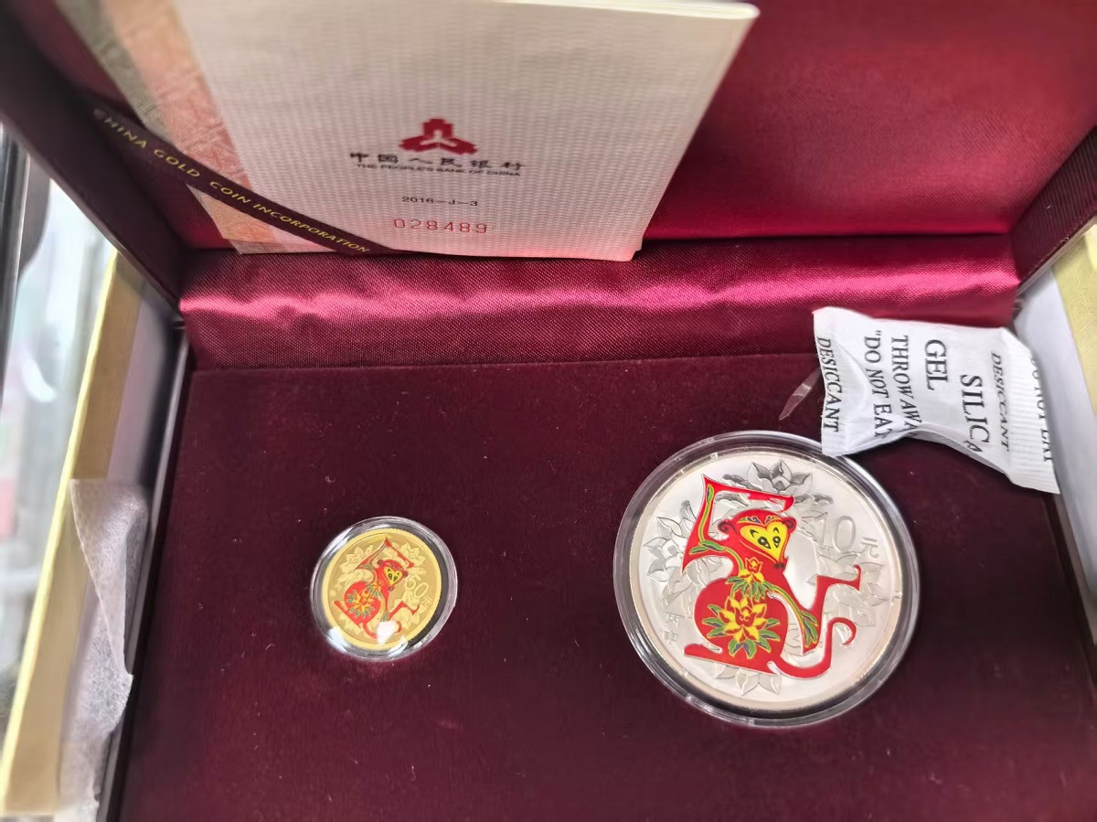 04年元宵节彩金银10800元,08年改革30周年金银8000,16年彩金银猴3400元,06年本金银狗3400元,银币氧化背发黑。