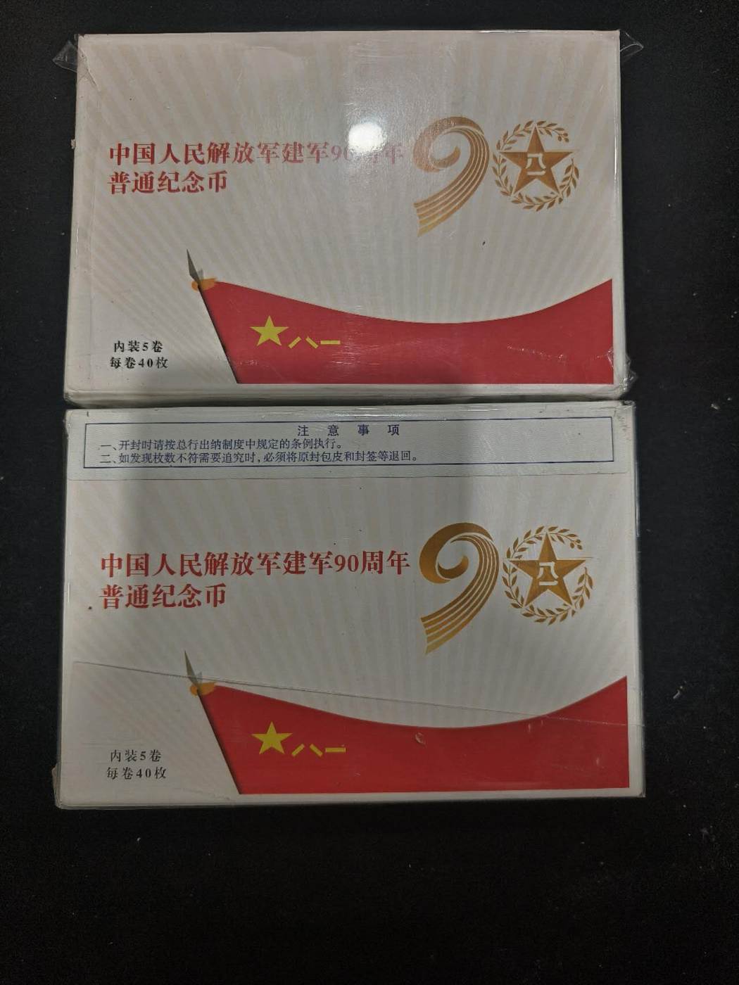 建军90纪念币原盒封签有裂 2盒 10.4/枚x400枚合计4160元 款到包邮