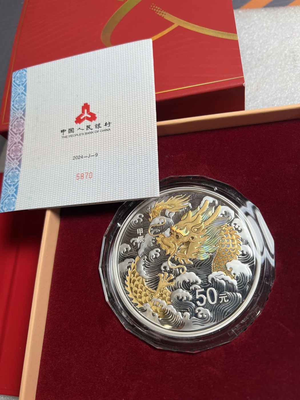 5500出售一枚24年150克彩银龙,号码无4