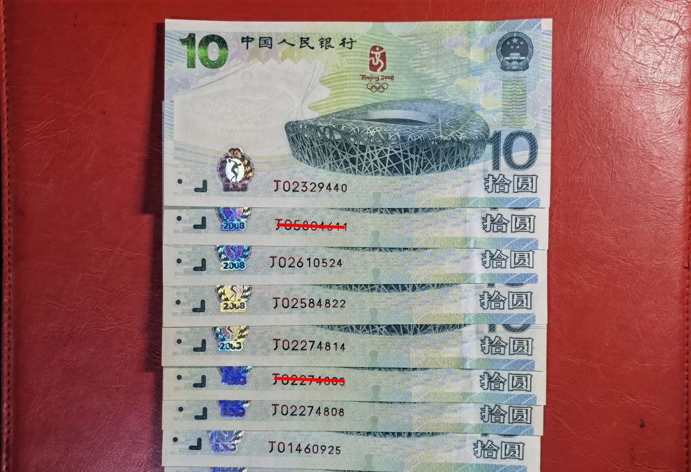 08奥运钞 品绝、灯下无斑 6张通走售:1960元/张 三包顺丰