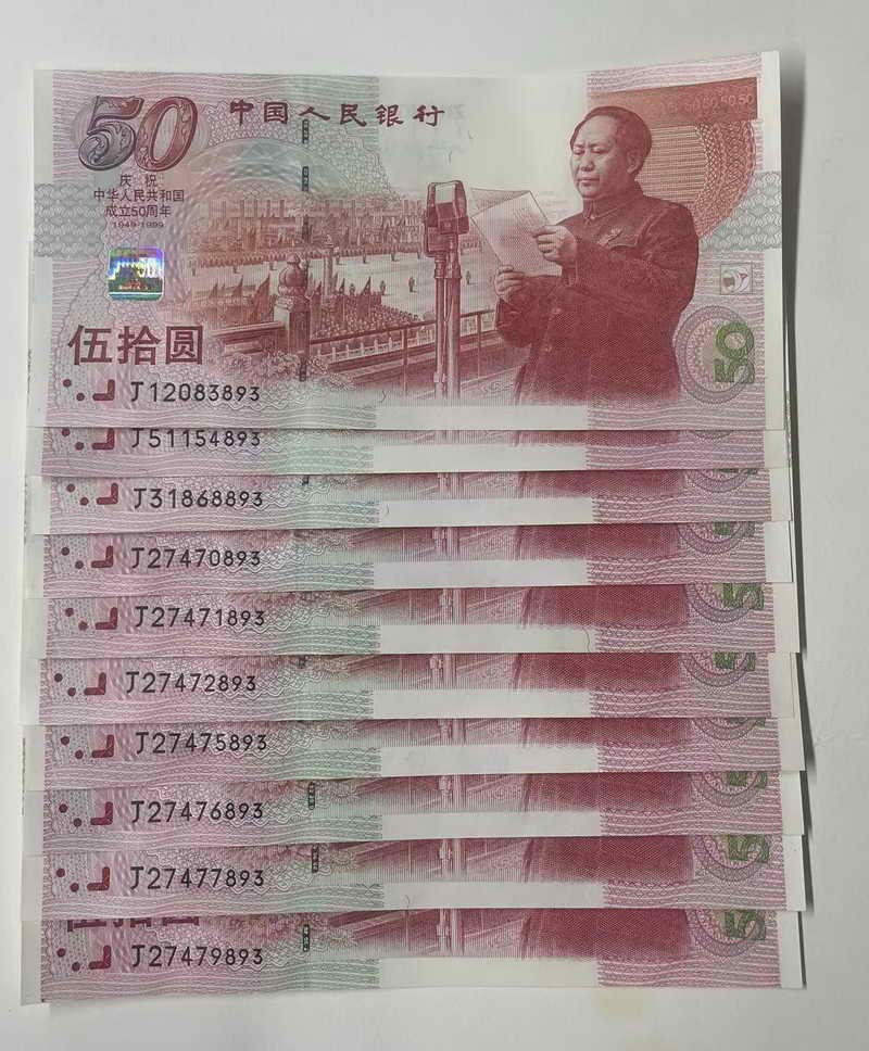 建国50年纪念钞10张尾3同