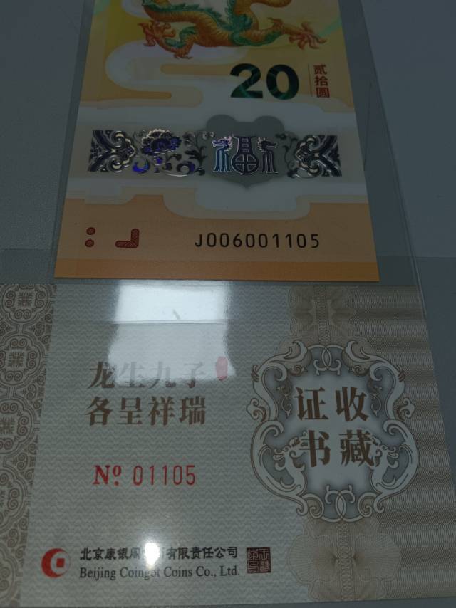 1、小龙钞006001105,三对子五龙珠尾生日号,龙生九子证书号01105生日号。