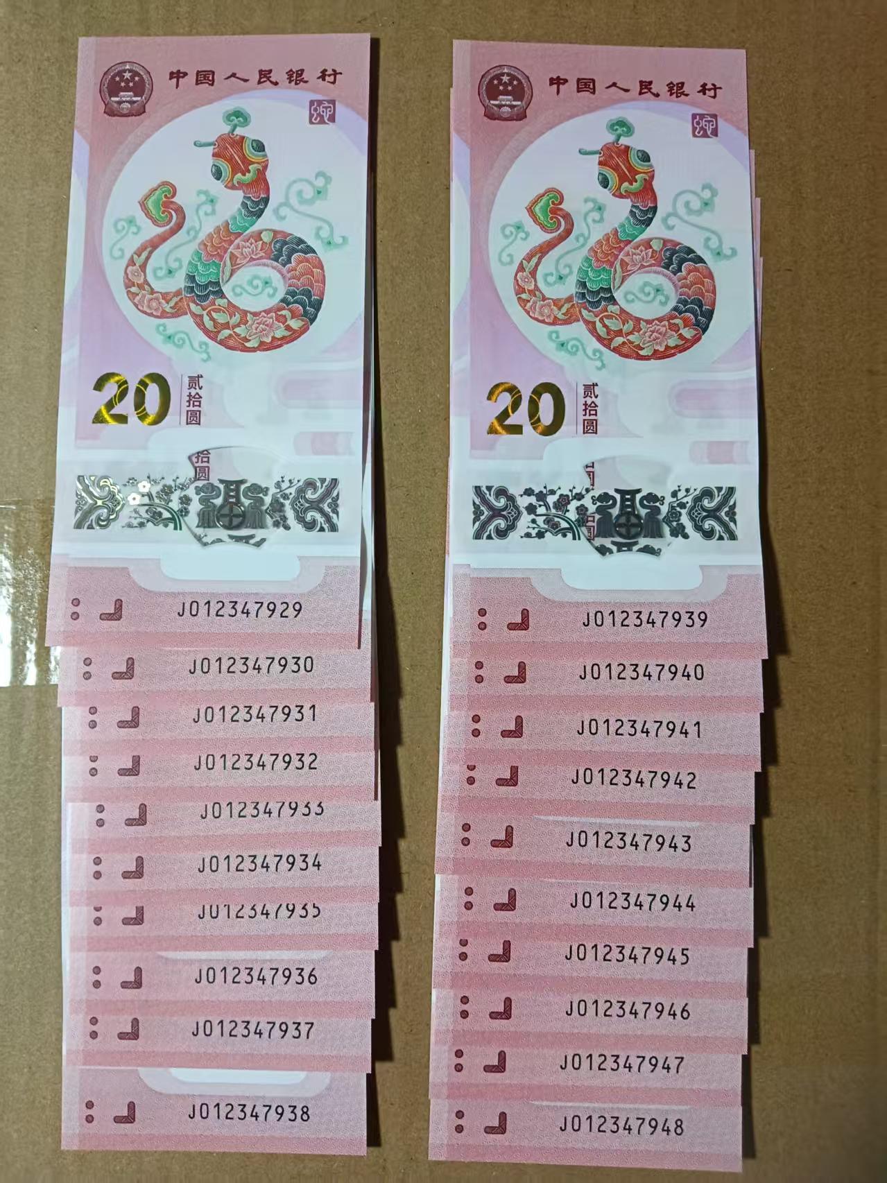 → 出蛇钞01234头20连号