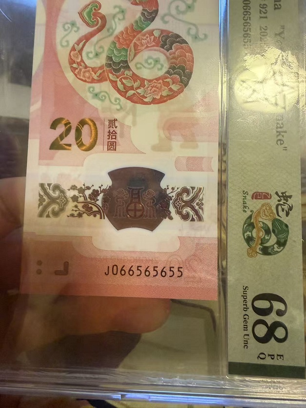 → 出蛇钞J066565655PMG68分