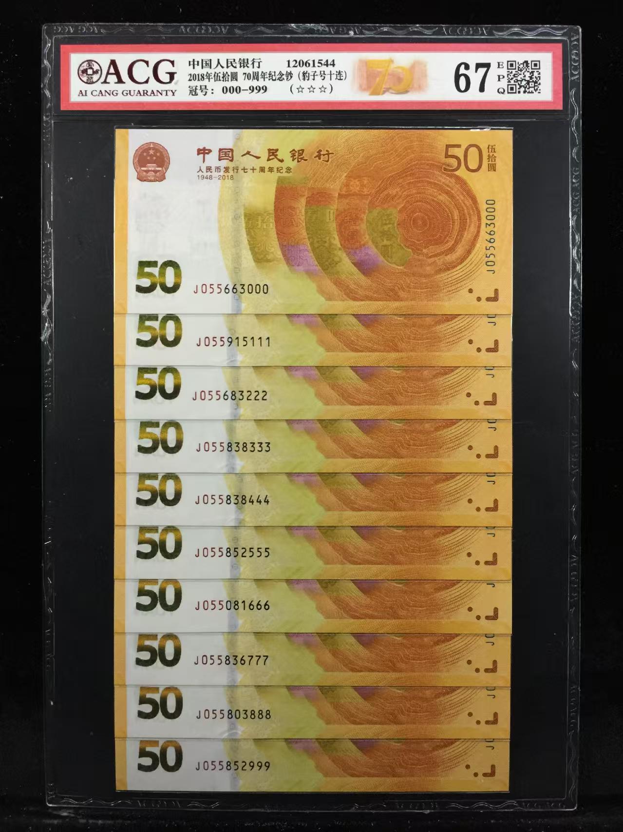 70钞豹子号一套000---999共10张.号码见下图,全部055头