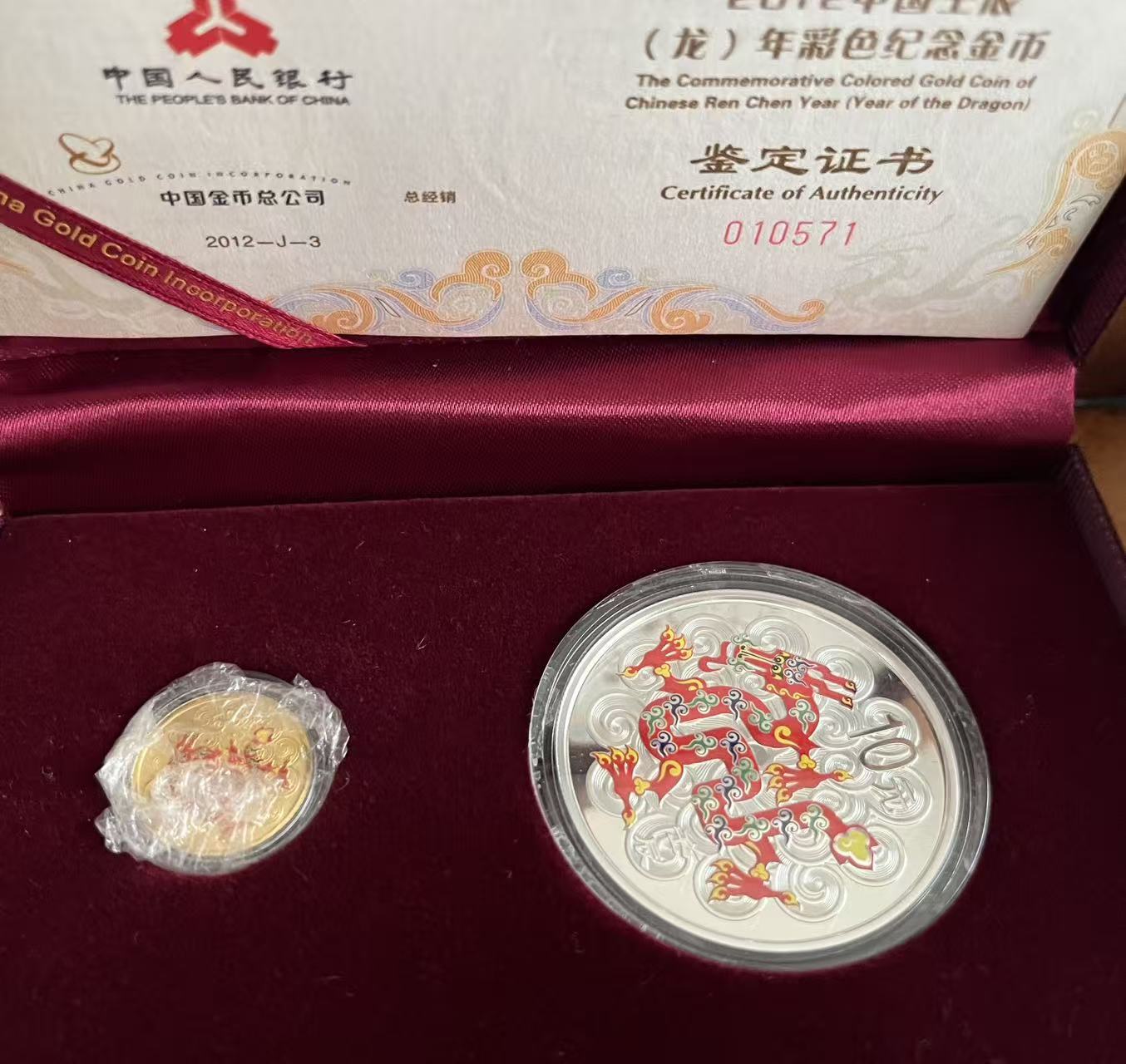 → 出售12年龙年彩金银币一套