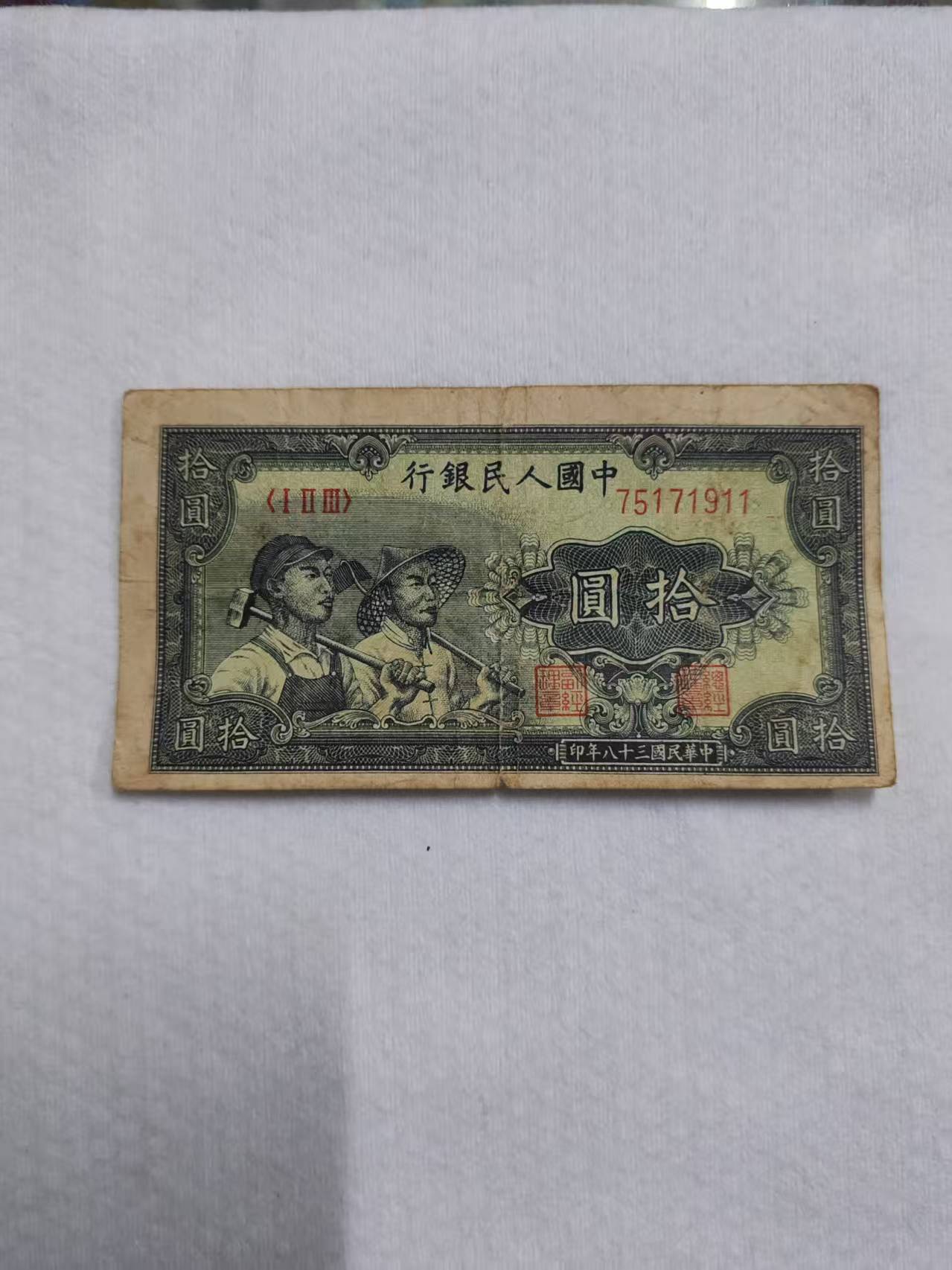 一版10元工农,1350元