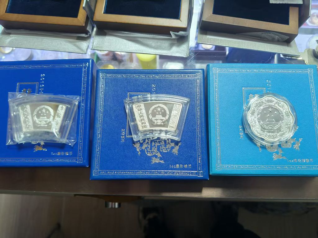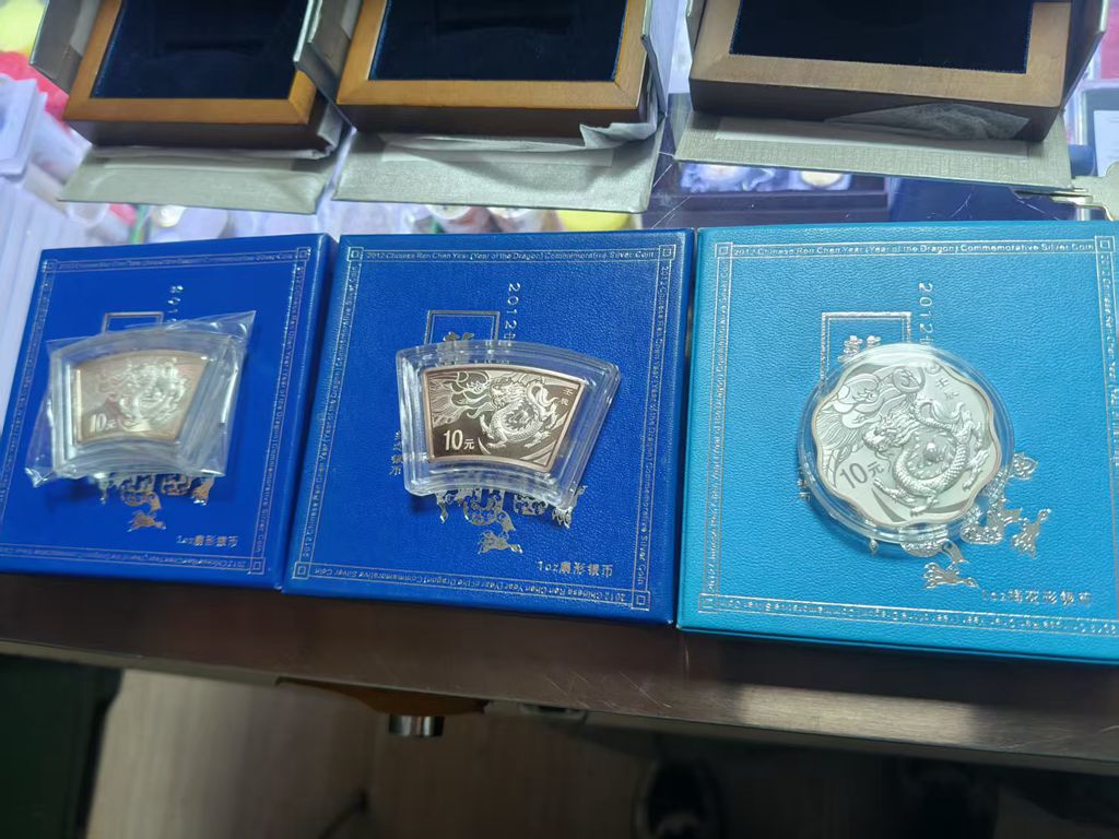 出12年扇龙2枚和梅花龙1枚,原盒原证,币边微氧,3枚一起出2200元,包品包快递发货。